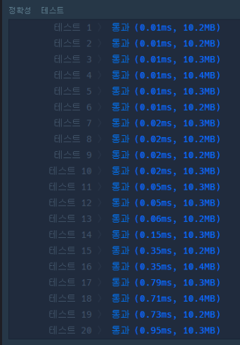 잘 통과했지만 후반 테스트케이스로 갈 수록 다소 느려지는 모습