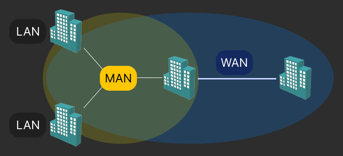 네트워크는 규모와 관리 범위에 따라 LAN, MAN, WAN 세 가지로 구분된다.