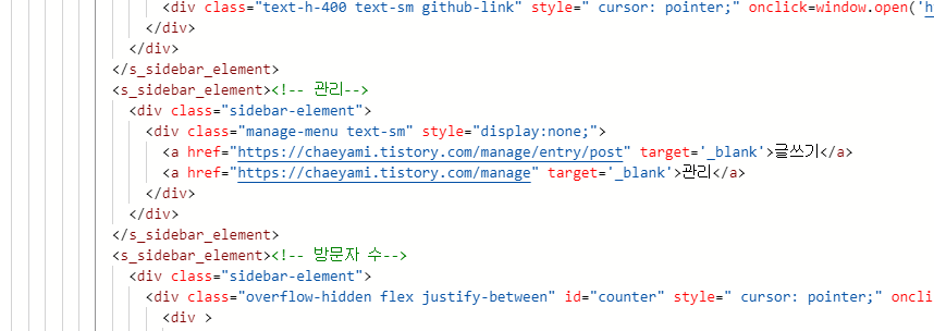 기본 설정이 display:none 이기 때문에 기본적으론 안 보인다. 이걸 내 블로그일 때만 보이게 바꿔주는 작업