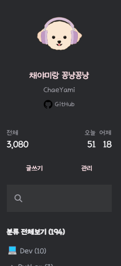 기본 스킨에는 글쓰기, 관리 등등 나오는 토글이 있었던 것 같은데(사실 기억이 가물가물함)
