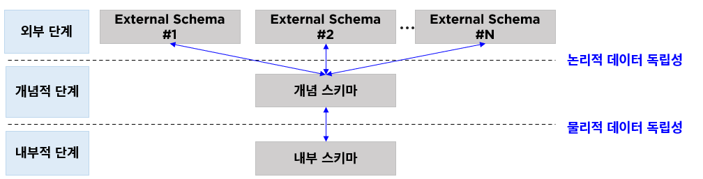 데이터베이스 3 단계 구조에서의 데이터 독립성 2 가지
