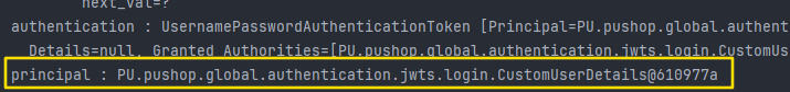 CustomUserDetails를 구현한 객체가 담겨있는 것을 확인할 수 있다.
