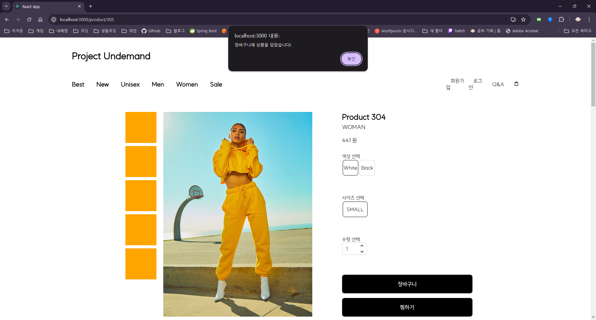 장바구니 목록을 확인하면 잘 들어와 있는 것을 확인!