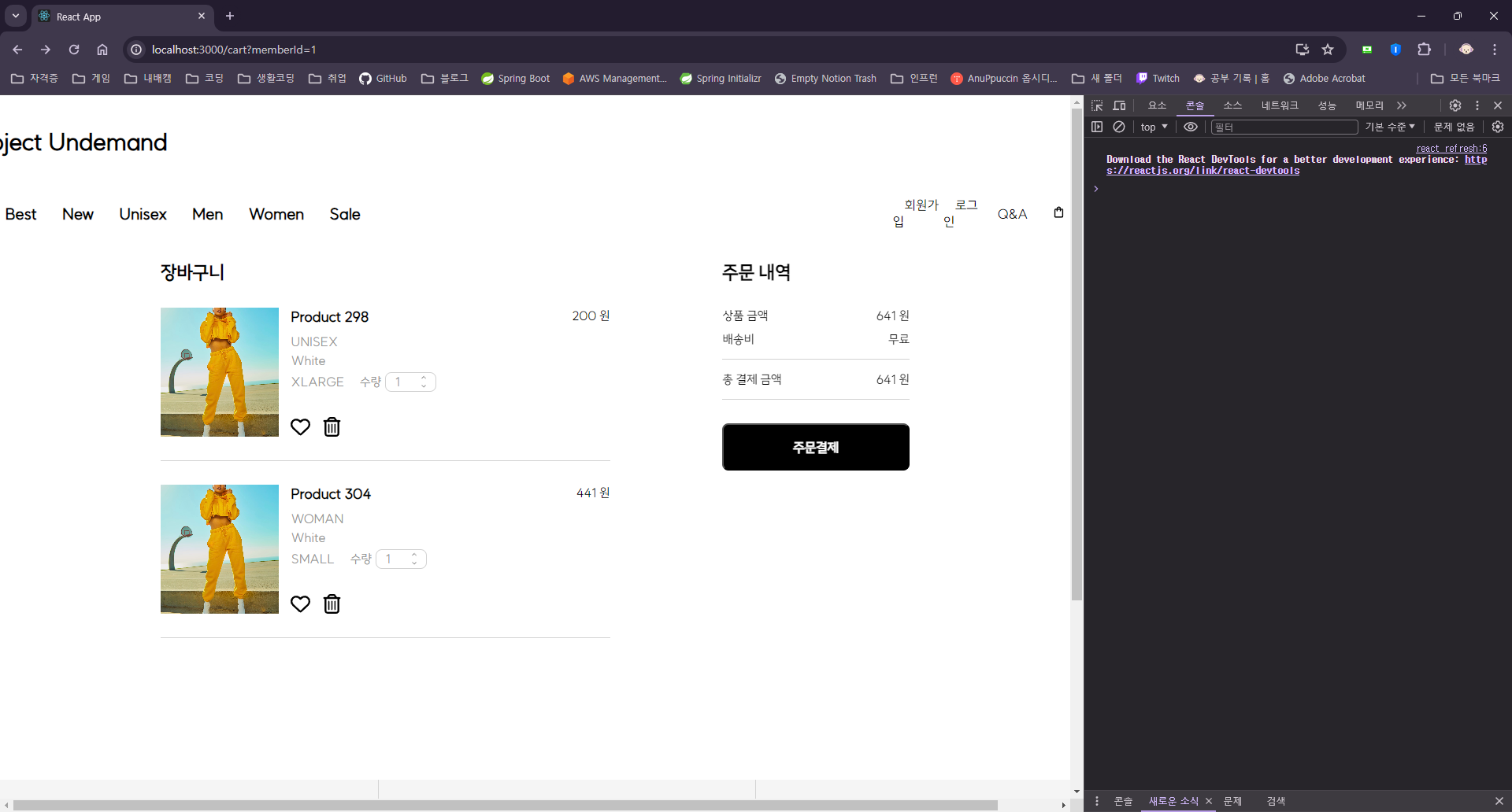 결제 api인 아임포트(iamport)가 포트원으로 이름을 바꿨다! 아무튼 나는 이걸 사용해서 결제를 구현했다. 결제 기능을 구현하기 전에, 당연히 장바구니/주문 기능부터 구현해야 한다. [SpringBoot/JPA]