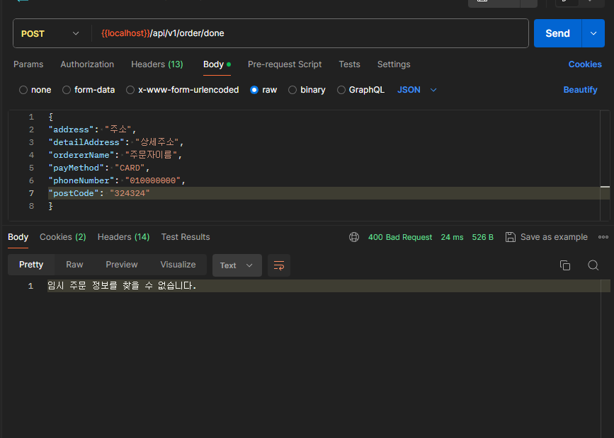 axios.post(`http://localhost:8080/api/v1/order/payment/${rsp.imp_uid}`, {