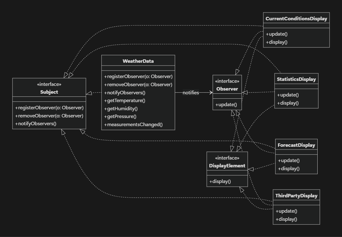 - 각 디스플레이 → Observer + DisplayElement 구현체