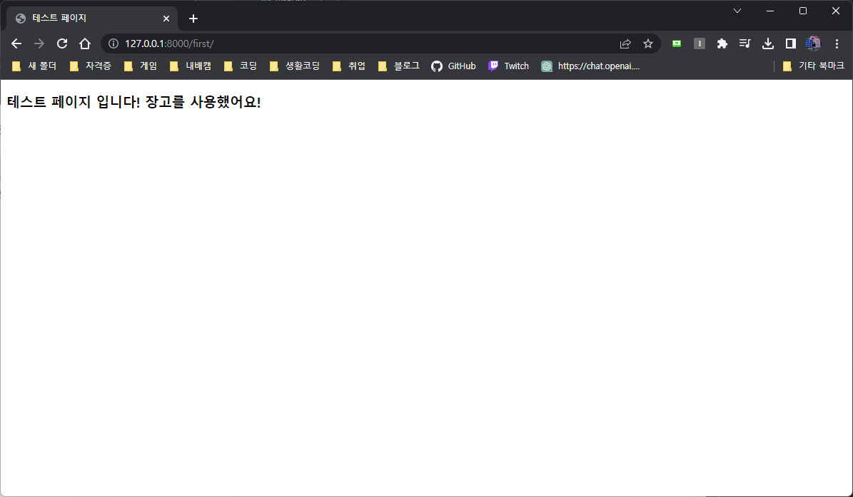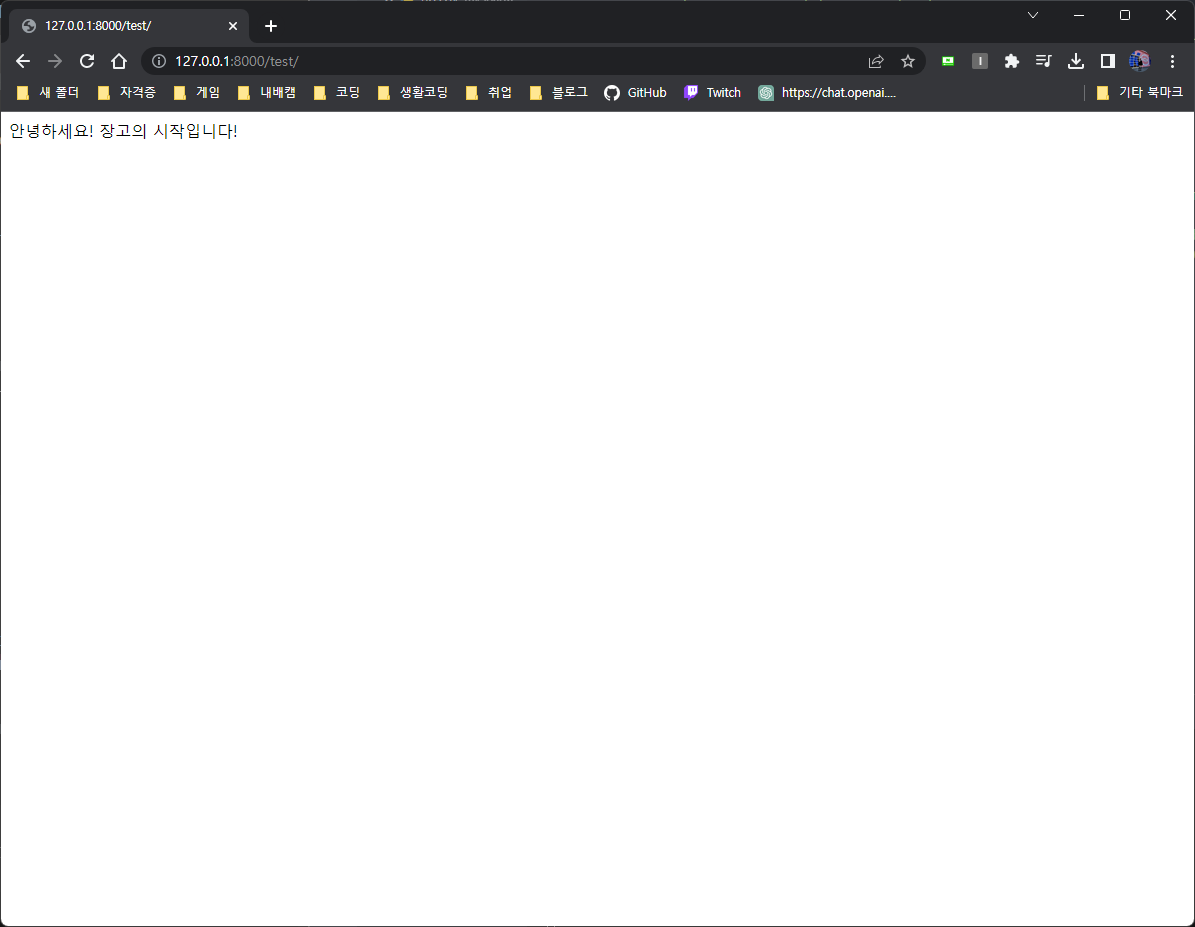 http://127.0.0.1:8000/test/ 주소로 들어가면