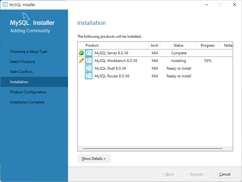 여기서 나는 필요한 커넥터를 받아야 하므로, MySQL Installer를 다시 실행한다. Installer는 컴퓨터 내 앱에 깔려있다.